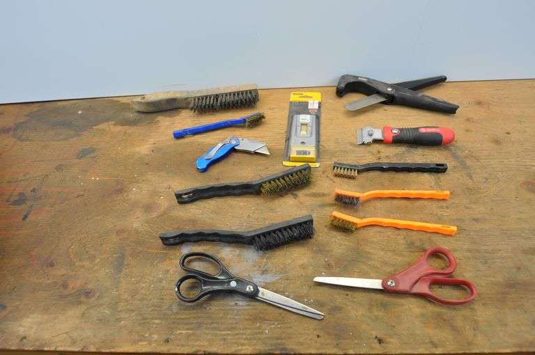 LOT 187 - Misc Brushes, Knives, Scrapers & Scissors