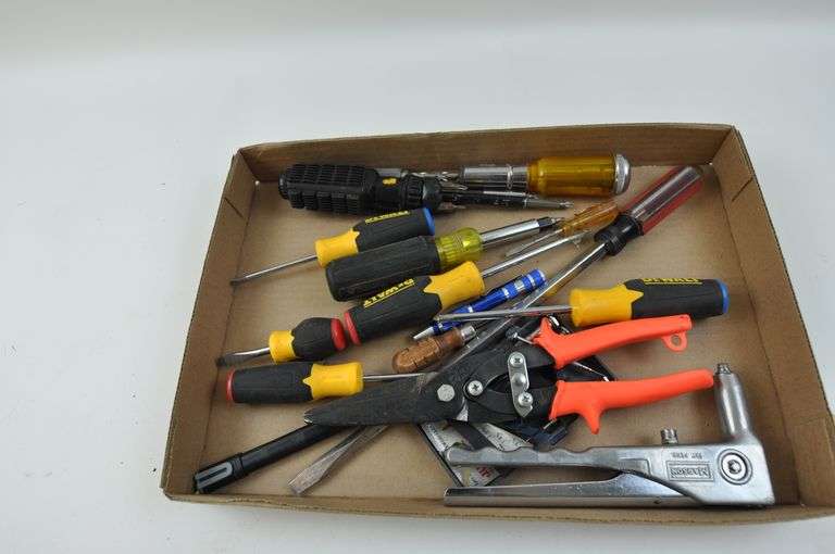 LOT 309 - Small Flat of Screwdrivers & More