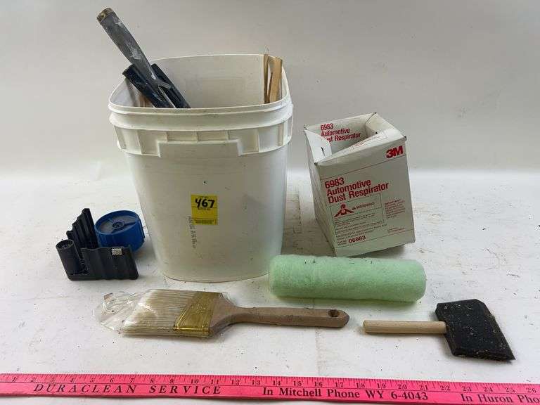 Roller handles, tape dispenser, Brushes and stir sticks.