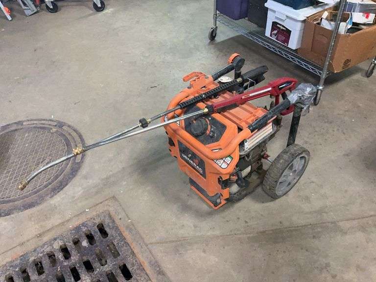 Handle broken. Owner tested, said hose was bad so did not include it, but it does start & operate. Includes two wands.
