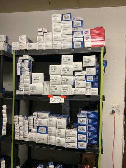 Lot includes various relays, switches, solenoids, resistors, distributor caps, ignition coils, points, fuel filters, oil caps and more. Buyer is purchasing the contents of one shelf unit and some boxes on the floor for ONE price! The shelving is NOT included.