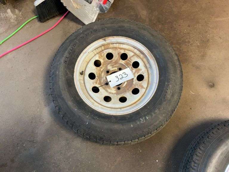 LOT 323 - ST205/75D15 Tire & 5-bolt Trailer Rim